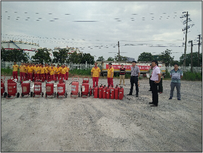 上午8:30演練準時開始,消防官兵對各種滅火器具的使用進行專業(yè)講解和操作演示。演練項目包括初起火災撲救、模擬發(fā)油臺提油車輛發(fā)油過程中著火撲救、庫區(qū)儲油大罐火災撲救,演練持續(xù)2個小時.整個演練過程指揮有力、分工明確、配合默契、實戰(zhàn)氛圍濃厚。期間,在總公司物流中心領(lǐng)導及油庫管理人員的陪同下,安監(jiān)局陳局長還實地察看了油庫的安全監(jiān)控系統(tǒng),詢問油庫安全生產(chǎn)工作各項措施的落實情況。